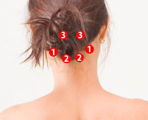 毛の生え際の頭蓋骨と首の骨の境目のくぼみ 頭痛、肩こり、疲労回復やストレス解消 |