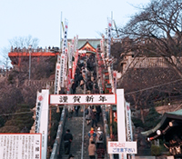 31日の夜22:00頃から混雑が始まり、その後新年の交通安全祈願の車の行列で近隣は混雑します。また成田山までは階段をたくさん上らなくてはいけません。その為に着物姿で行くと悲惨な姿に・・・